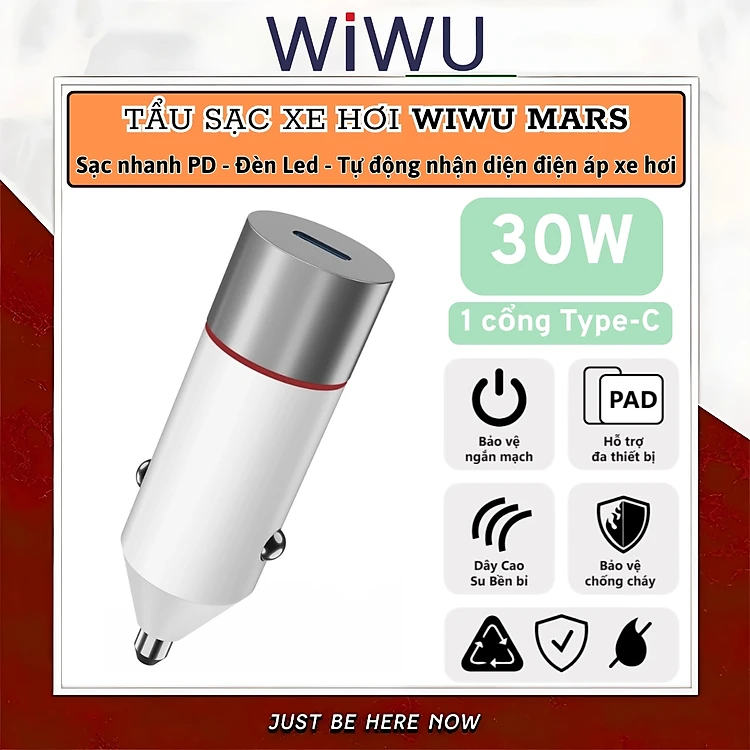 Tẩu củ sạc nhanh xe hơi ô tô PD 60W 2 Type-C USB-A QC3.0 hiệu WIWU Mars cho iphone 16 15 14 13 12 iPad Vivo Oppo samsung Macbook - hàng nhập khẩu