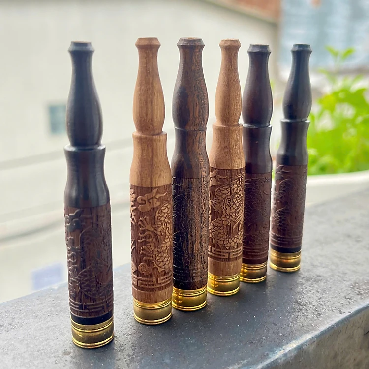 Tẩu Lọc Thuốc Bằng Gỗ Mun Khắc Rồng Phụng - TL016