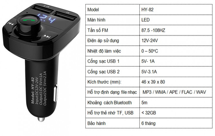 Tẩu Nghe Nhạc MP3 trên ô tô HY-82một thiết nghe nhạc hiện đại kích thước nhỏ gọn, kiểu dáng sang trọng.