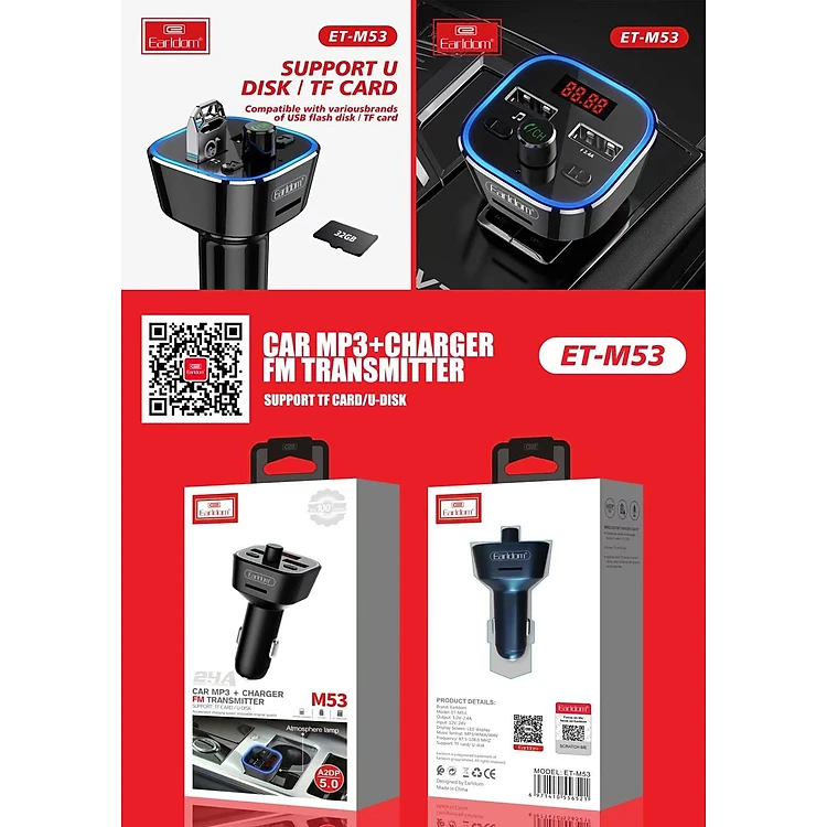 Tẩu Sạc Bluetooth Earldom M53 Hàng Chính Hãng