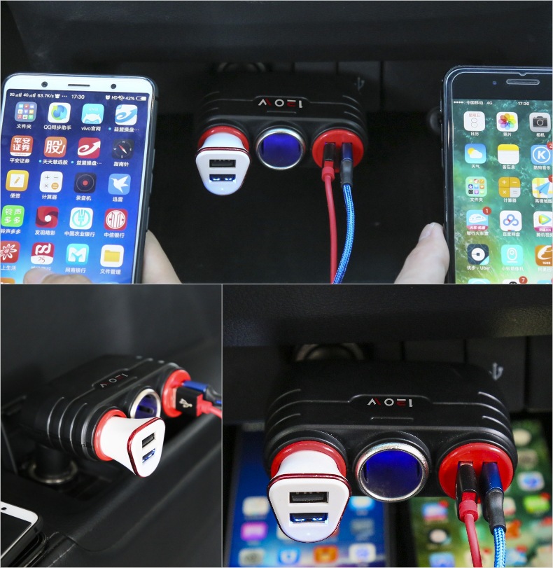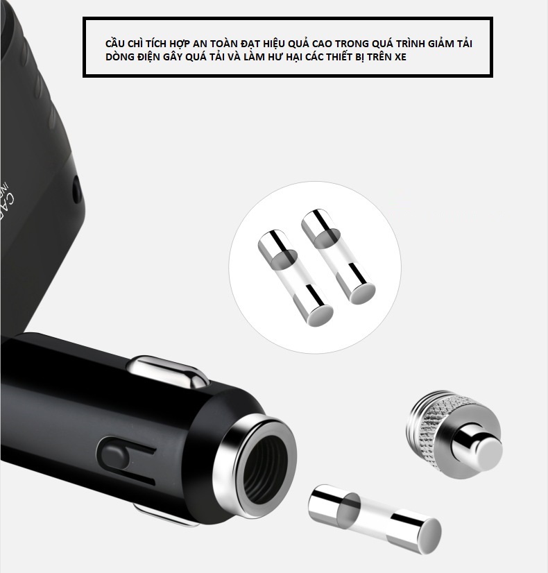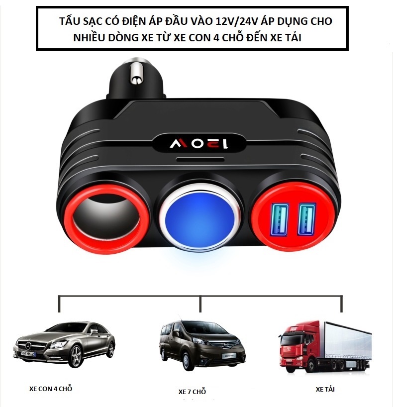 Tẩu sạc ô tô 4in1, bộ chia 2 tẩu sạc và 2 cổng USB 2.1A sạc đa năng