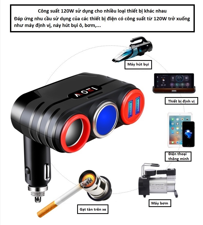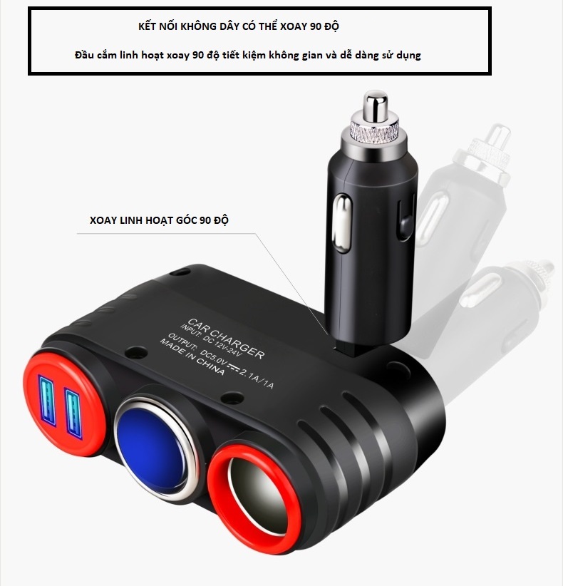 Thiết kế linh hoạt, hợp lý với phần đầu có thể gấp xoay giúp bạn cắm sạc ở nhiều vị trí Hỗ trợ chia nhiều cổng giúp bạn cấp nguồn được cho nhiều thiết bị điện cùng lúc mà vẫn đảm bảo ổn định. Chân cắm tiếp xúc điện tốt, luôn chắc chắn khi xe đi trong mọi địa hình. Phù hợp với nhiều dòng xe, nhiều thiết bị.