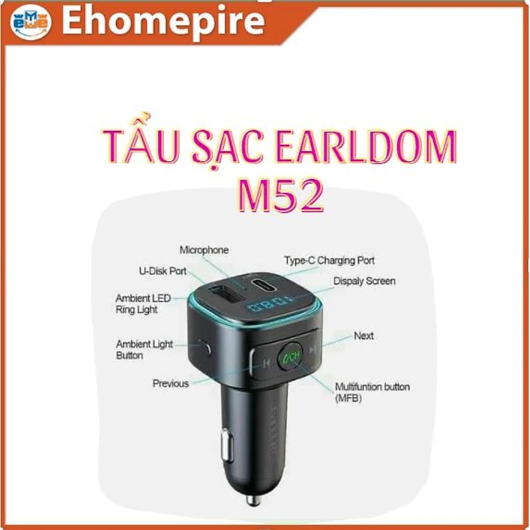 Tẩu Sạc cho Ô Tô Earldom M52- Hàng chính hãng - NPP Ehomepire