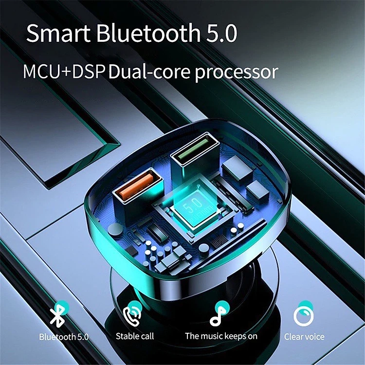 Tẩu Sạc Q7 5.0 Kiêm Máy Nghe Nhạc Mp3 Hai Cổng USB 3.1A Tích Hợp Đèn LED Cho Xe Hơi - hàng nhập khẩu