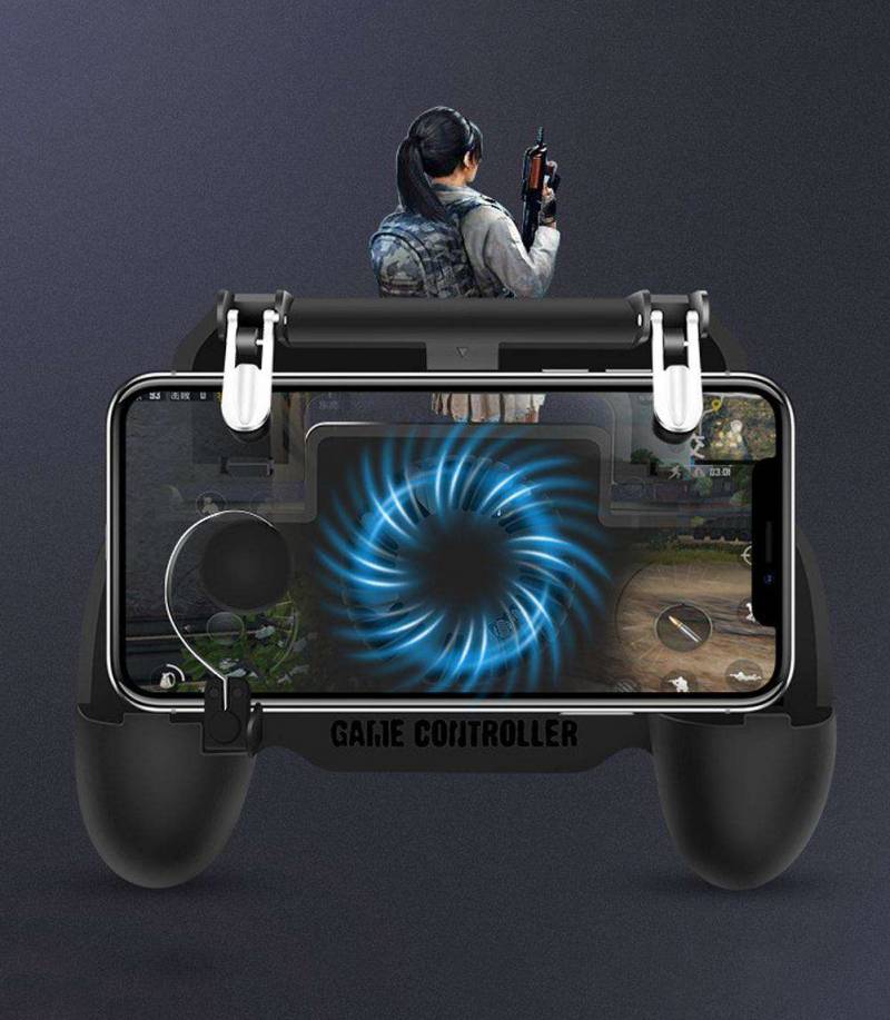 Phụ kiện chơi game mobile. Phiên bản tay cầm tích hợp 4 trong 1: tản nhiệt điện thoại, nút hỗ trợ chơi game, gamepad, sạc dự phòng.