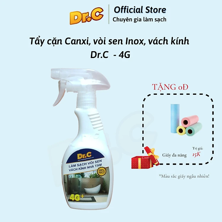 Tẩy Cặn Canxi, làm sạch VÒI SEN INOX, VÁCH KÍNH NHÀ TẮM (chai 300ml) TẶNG GIẤY ĐA NĂNG
