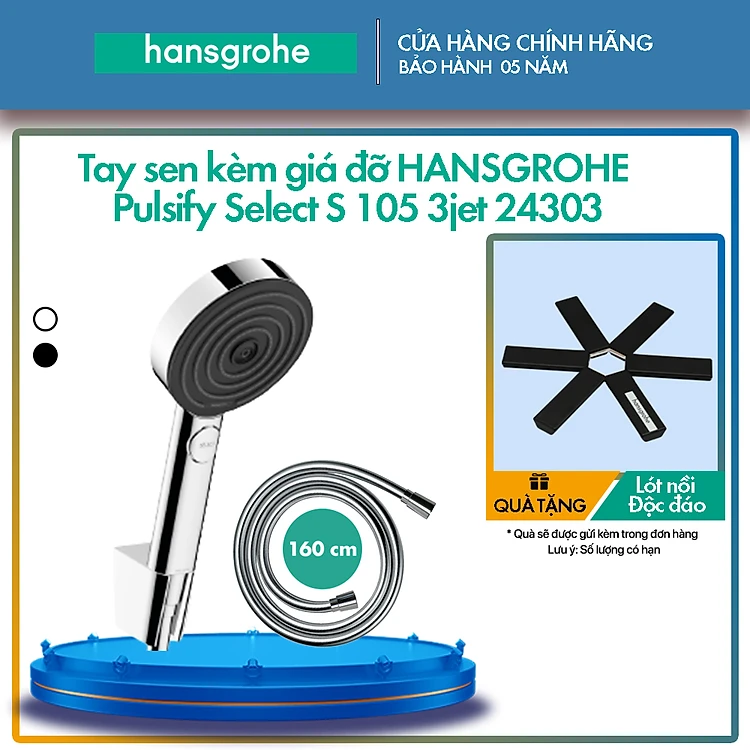 Tay sen kèm giá đỡ hansgrohe Pulsify Select S 105 3jet 24303