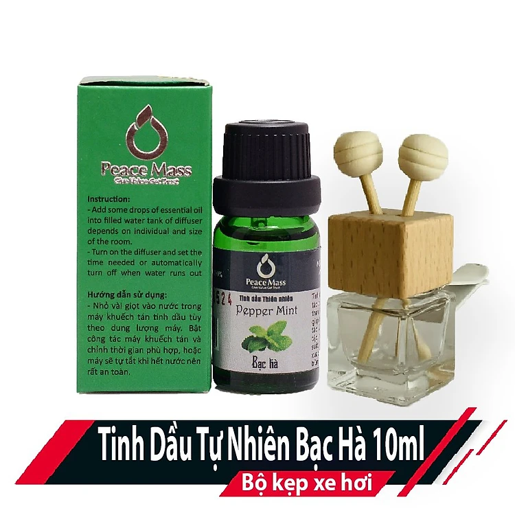 TD10ml-KX5 Combo Tinh Dầu Bạc Hà Peace Mass 10ml - Bộ Kẹp Xe Ô tô - Peppermint
