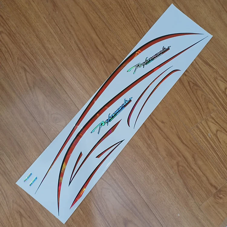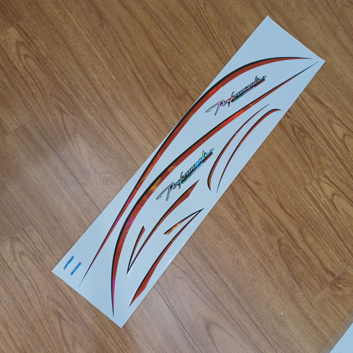 Chất liệu: tem dán 3 lớp, chống nước siêu tốt, sản phẩm sáng bóng cực bền, với họa tiết 2 màu và chữ PERFORMANLE siêu nghệ thuật cực đẹp.