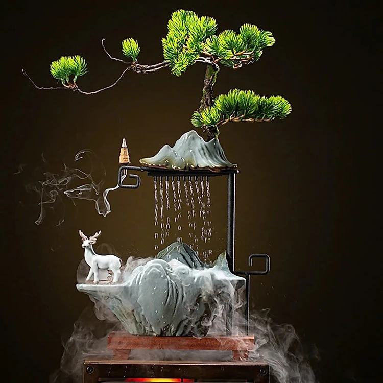 Thác Nước Phong Thủy Tùng Hươu Xông Trầm Phun Sương Tiểu Cảnh Trang Trí Nhà Hút Tài Lộc Quà Tặng Tân Gia Cao Cấp