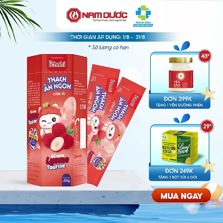 Thạch ăn ngon Ích Nhi hộp 21 túi x30 gr, bổ sung Lysine, Taurin tăng cường chuyển hóa, hấp thu tối đa dinh dưỡng