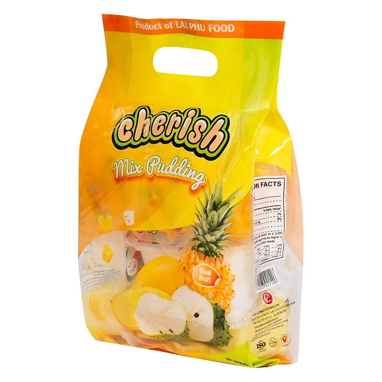 Thạch Pudding Tổng Hợp Lai Phú (850g) được đựng trong túi đẹp mắt, dễ bảo quản và dùng được lâu.