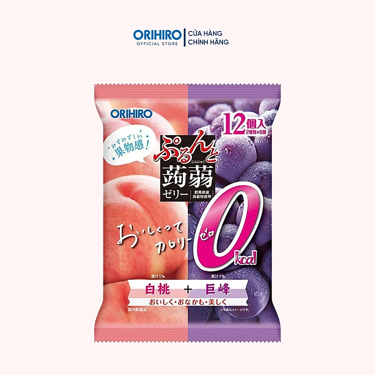 Thạch trái cây Orihiro - gói lớn 12 cái vị đào và nho tím