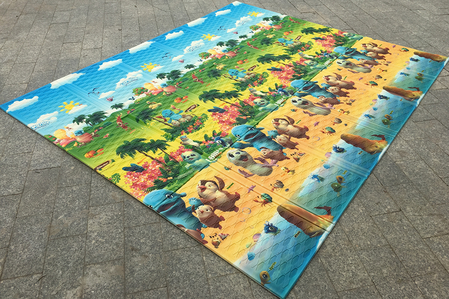 - Thảm chơi 2 mặt họa tiết sinh động, màu sắc sặc sỡ. Với thời tiết nhiệt đới nóng ẩm của Việt nam, sự mềm mại của thảm phụ thuộc vào sự biến đổi của khí hậu.