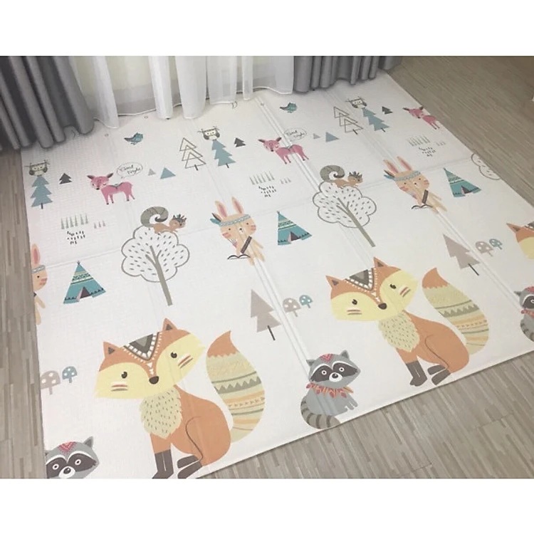Thảm gấp gọn Hàn quốc cực tiện cho các con chơi, lăn lê bò toài, thảm có bề mặt chống thấm nước. Thảm vừa cho con chơi vừa làm thảm trang trí được vì họa tiết vô cùng dễ thương, màu sắc nhẹ nhàng, tinh tế. Mang đi dã ngoại, du lịch vô cùng tiện. Thảm XPE làm từ các sợi PE hữu cơ kiểu như xốp, nhưng lại không bị nóng như các thảm xốp thông thường vì bề mặt được phủ lớp silicon mềm mát. Đương nhiên trọng lượng thảm cũng nhẹ hơn thảm silicon rất nhiều. Thảm Silicon bình thường tầm trên 10kg thì thảm XPE chỉ nặng hơn 1kg thôi. Thảm được phủ 2 lớp bề mặt là silicon XPE, nên CHỐNG THẤM TUYỆT ĐỐI. Mùa hè không cần đóng bỉm con cho nóng bức. Bé ăn dặm vương vãi mẹ lướt nhẹ khăn là cũng okie. Thảm mùa hè thoáng mát hơn các loại thảm bông, nilon nhiều nhiều. Bề mặt gân nhẹ vừa chống trơn trượt vừa tạo độ thông thoáng. Mùa đông lại rất ấm nhờ lõi xốp dày dặn. Chống va đập, chấn thương cho bé rất tốt. Với độ dày 1cm, bé con có không may nghịch ngã cũng không lo đau như chiếu. Tập đi, tập bò êm ru. Chất liệu xốp XPE, bề mặt phủ silicon cao cấp an toàn. Đặc biệt không mùi khó chịu dù ngay cả ở lần đầu tiên sử dụng. Kích thước full thảm: Có 2 loại: 1,5m x 1,8m x 1cm, 1,8m x 2,0m x 1cm. Thoải mái bé bò, bé nằm, bé chơi. Kích thước khi gấp gọn: 80 x 45 x 12 siêu gọn.