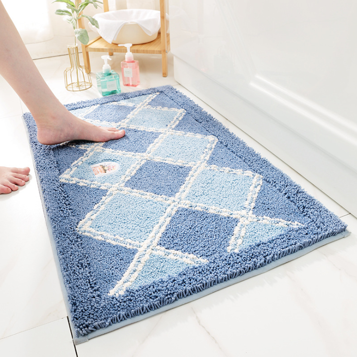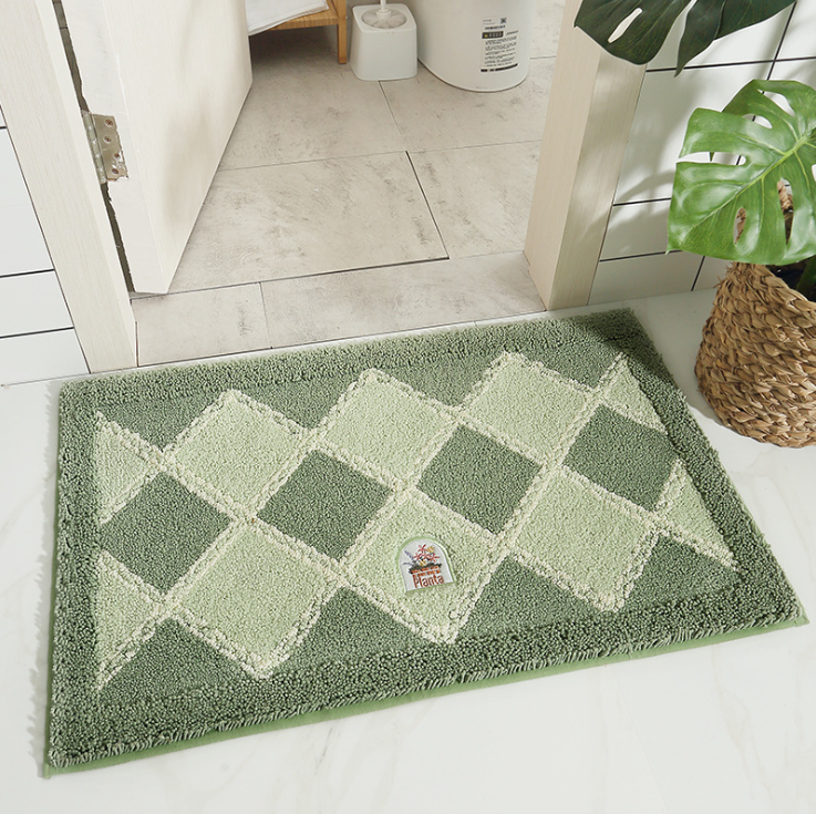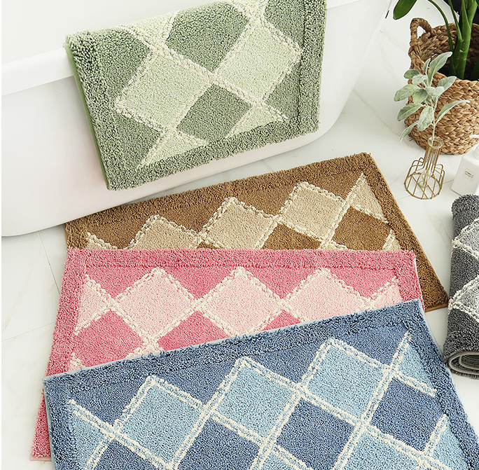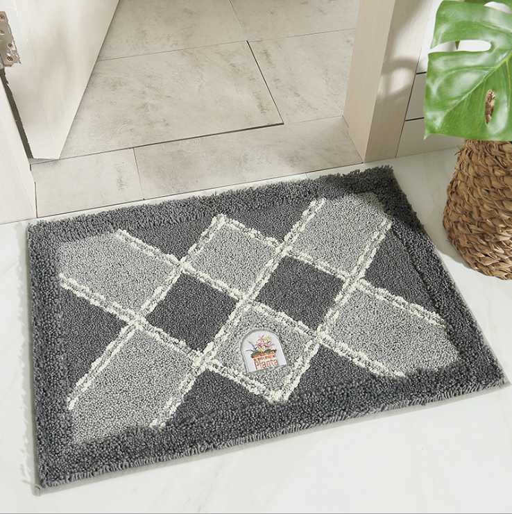 Thảm lau chân họa tiết caro chéo màu nâu.