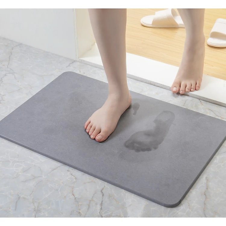 - Không trơn trượt, an toàn cho người già và trẻ nhỏ. Vật liệu Diatomite với những lỗ siêu nhỏ có khả năng tự thấm, hút ẩm siêu nhanh và ngay lập tức giải phóng lượng ẩm này vào không khí.