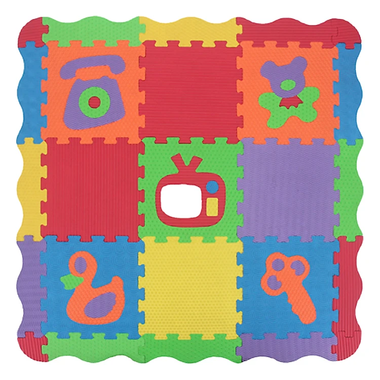 - Thảm có nhiều màu sắc sinh động, được in hình các con vật ngộ nghĩnh, hình các công cụ khác nhau như chìa khóa, tivi, điện thoại.... dễ thương giúp bé vừa chơi vừa học, bước đầu nhận diện hình dạng các vật khác nhau.