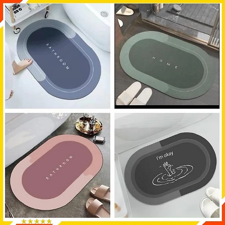 Thảm Chùi Chân Chống Trượt Silicon – Thảm Lau Chân Thấm Nước Hình Bầu Dục Trải Sàn Nhà Tắm Nhà Bếp Nhà Vệ Sinh