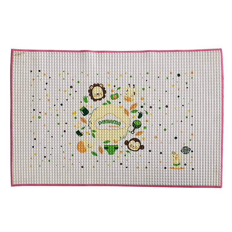 • Thảm Lót Túi Khí Pamama Air BUBBLE RUBBER COTSHEET - Hồng được sản xuất từ nguyên liệu 100% cao su tự nhiên, đảm bảo độ mềm mại và thông thoáng với thiết kế bề mặt có hơn 4000 túi khí bao phủ khắp diện tích 90 x 60 cm.