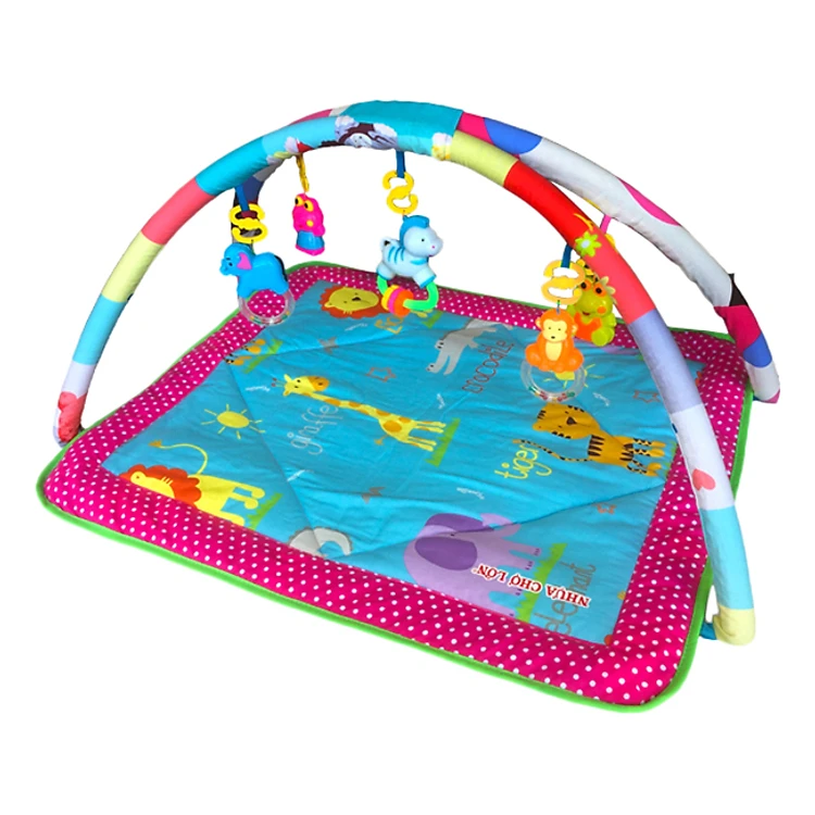 - Thảm với nhiều họa tiết ngộ nghĩnh, màu sắc rực rỡ và đồ chơi lúc lắc giúp kích thích thị giác và thính giác của bé yêu, cho bé học cách nhận biết màu sắc và các sự vật xung quanh.