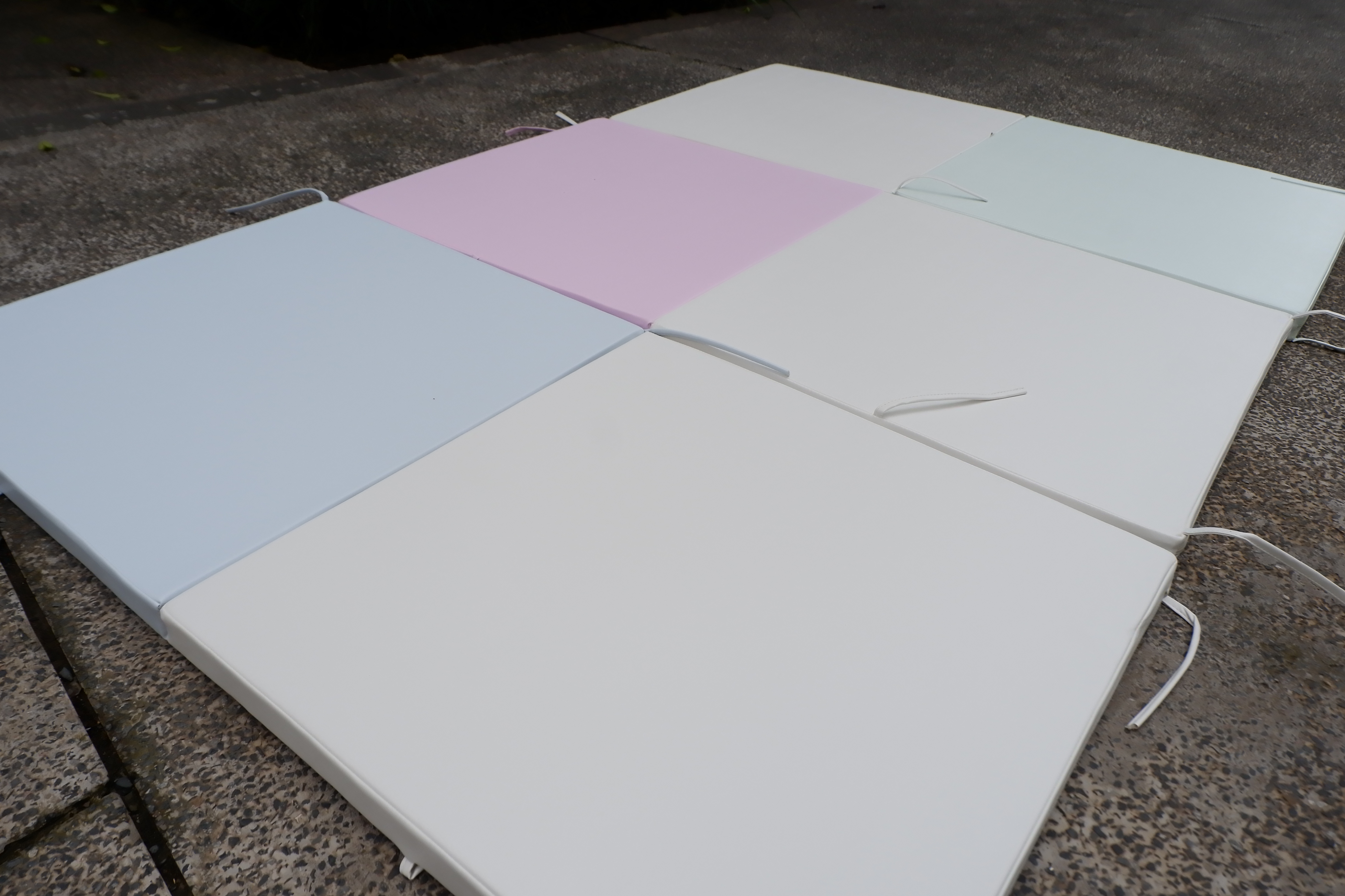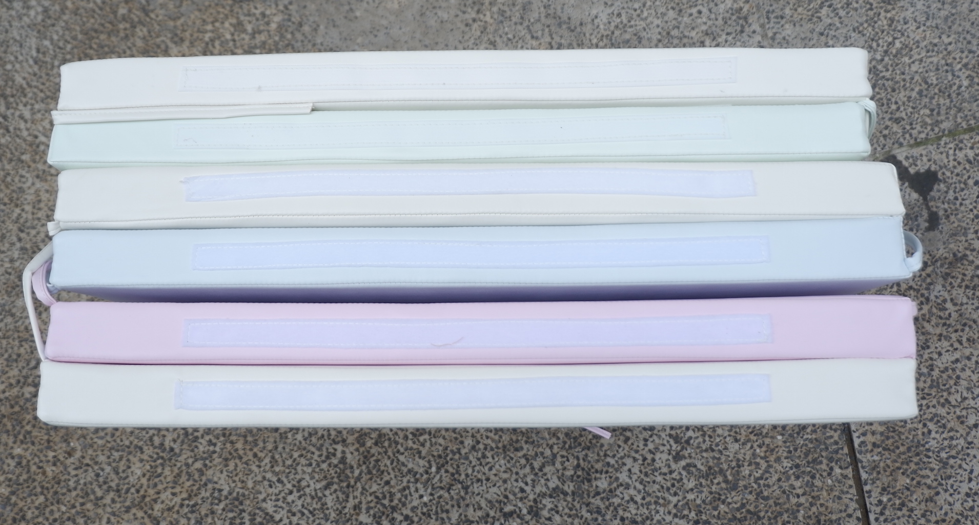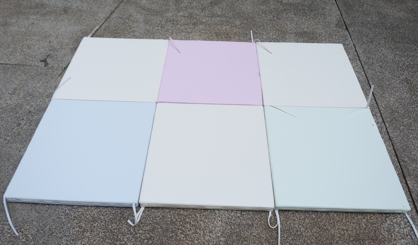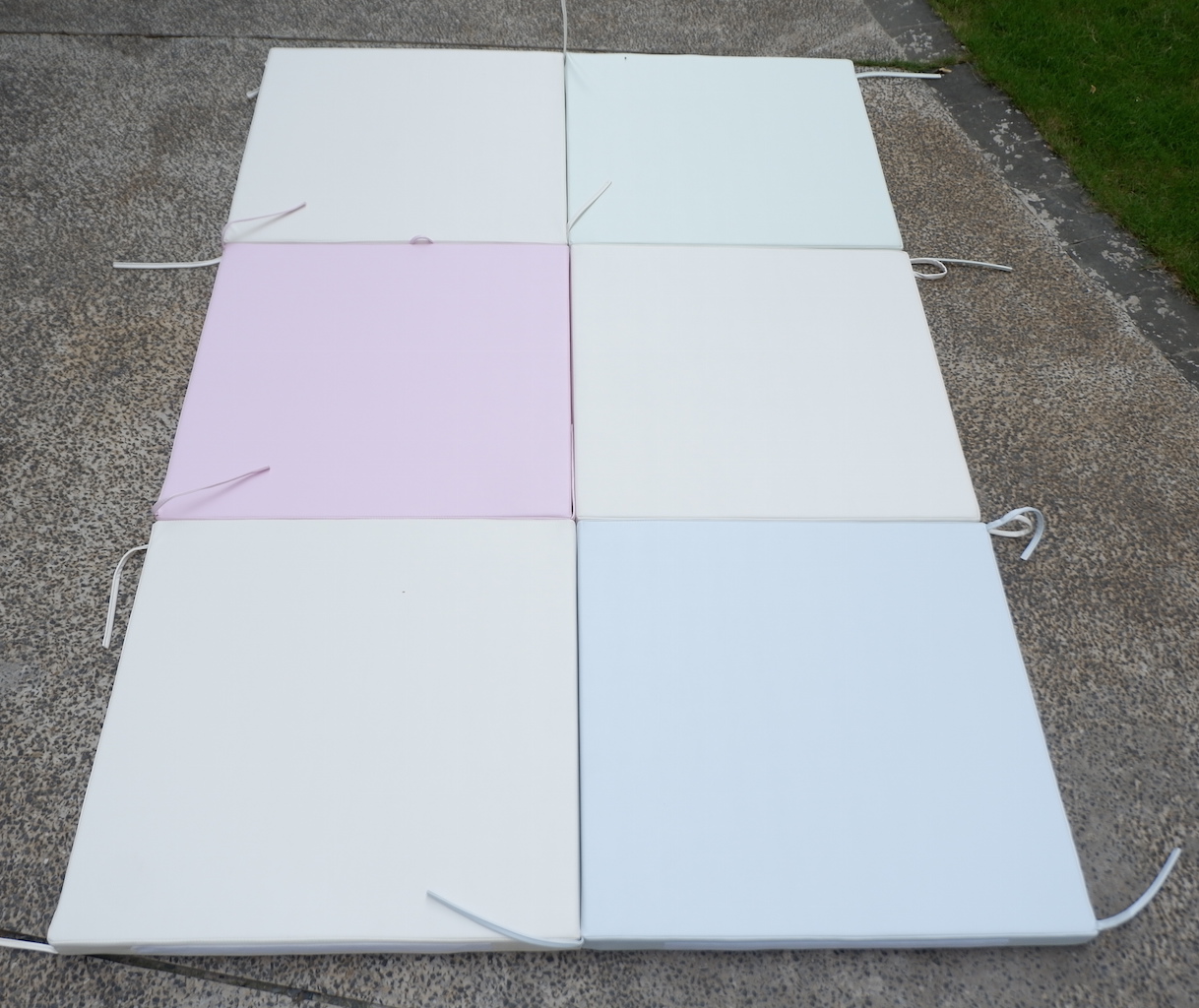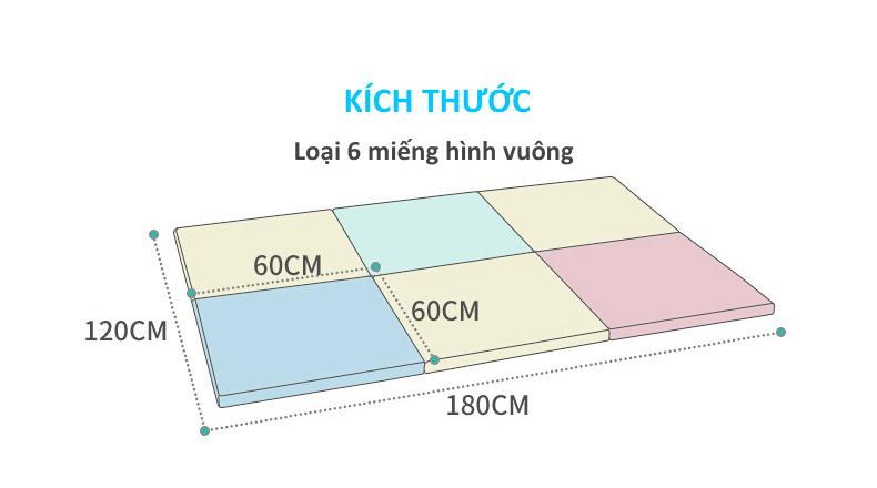 6 miếng nệm với 6 màu riêng: hồng, xanh, vàng nhạt
