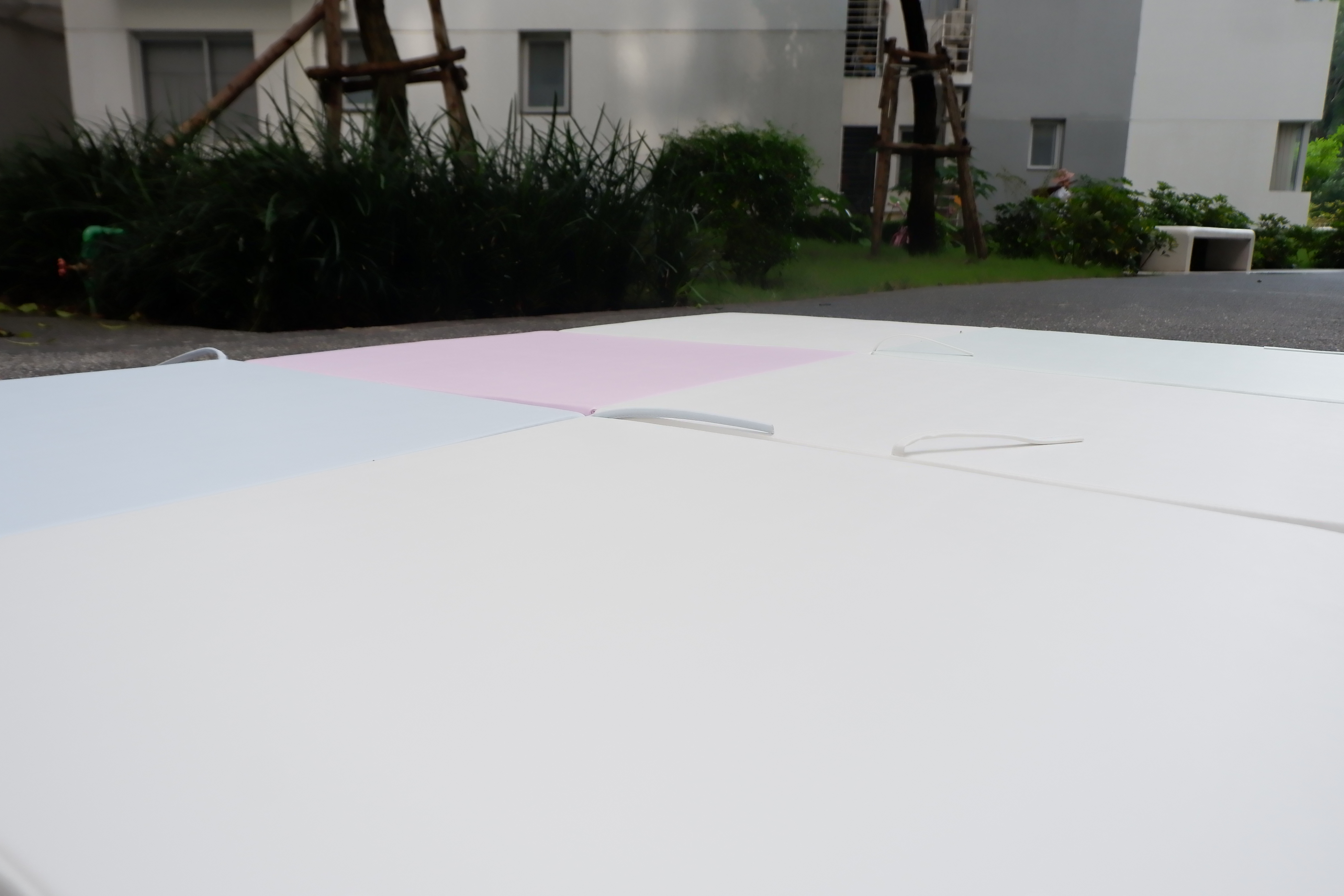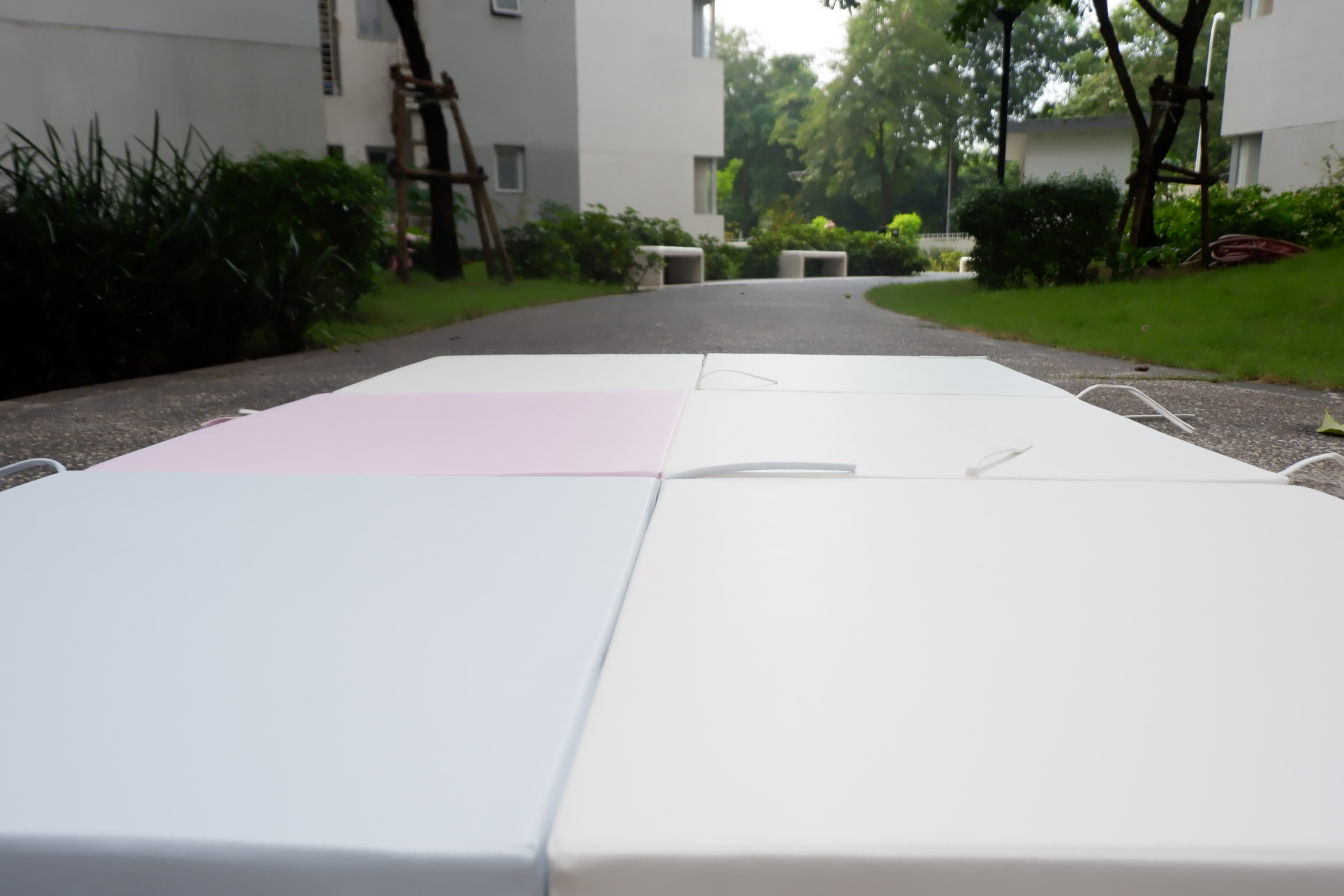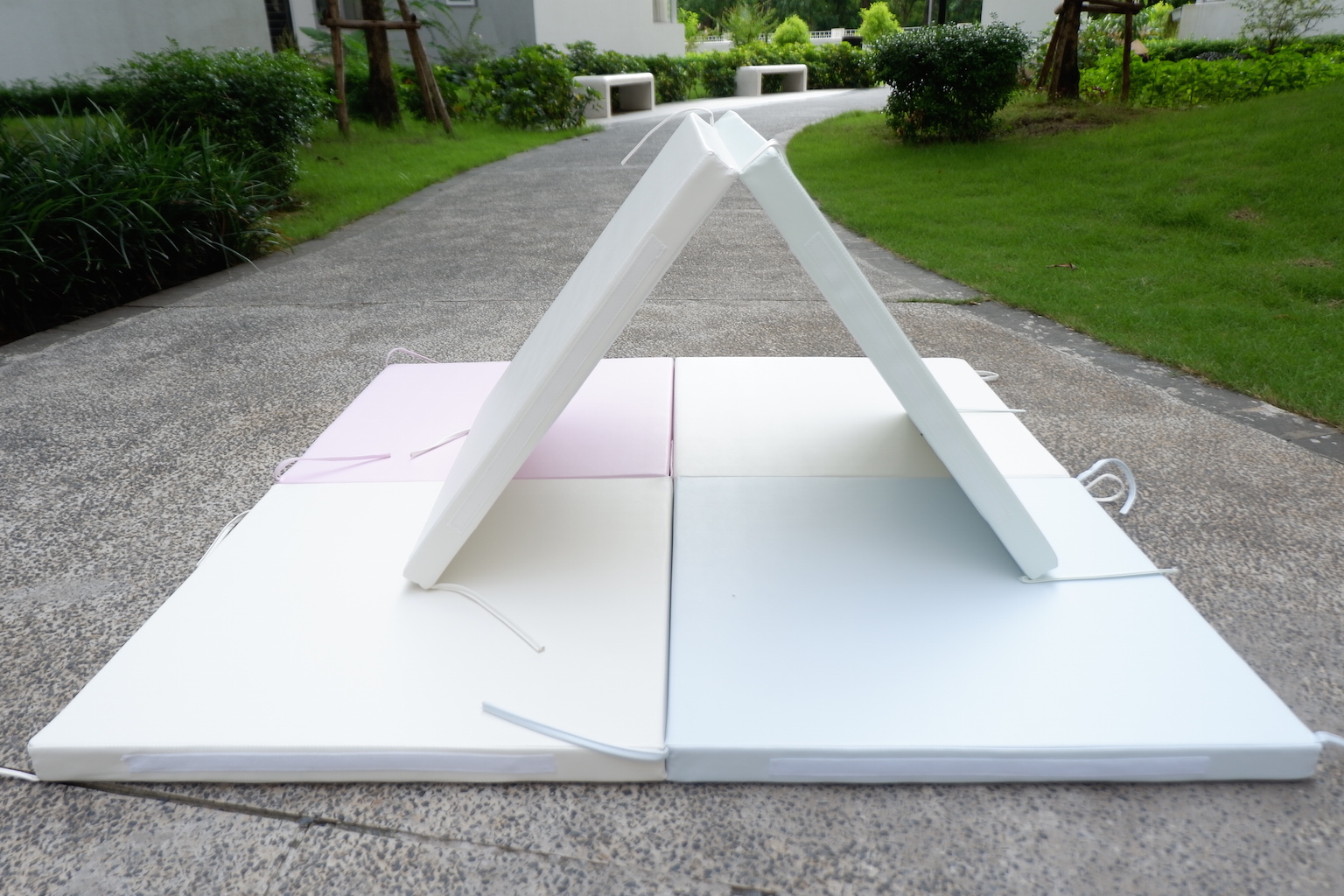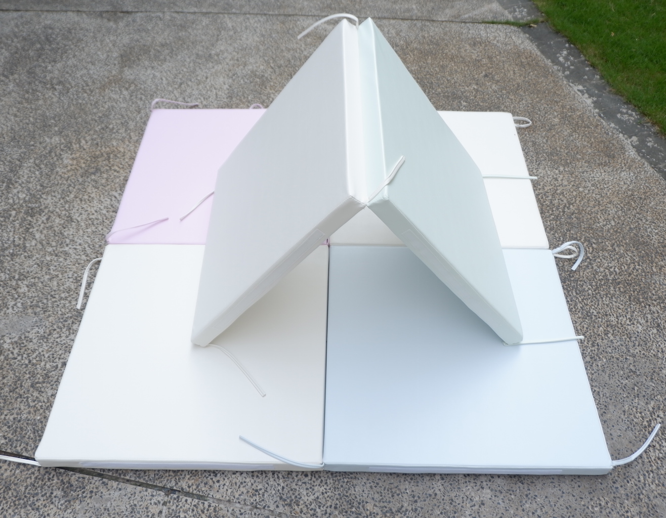 Mỗi tấm đệm dày 4cm, trên mỗi miếng đệm có các miếng dán và dây buộc để kết nối