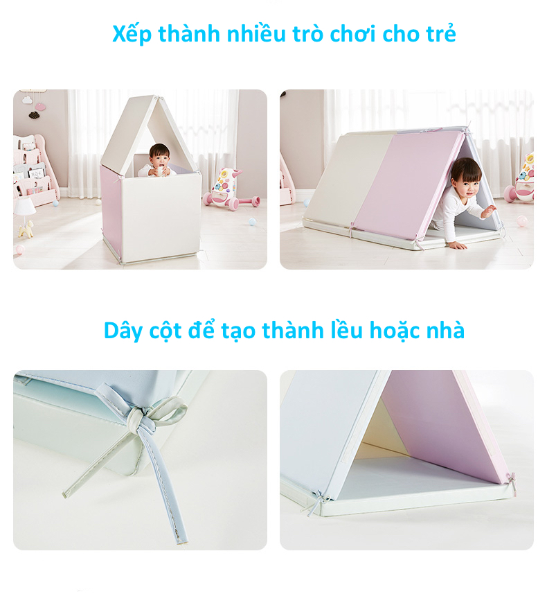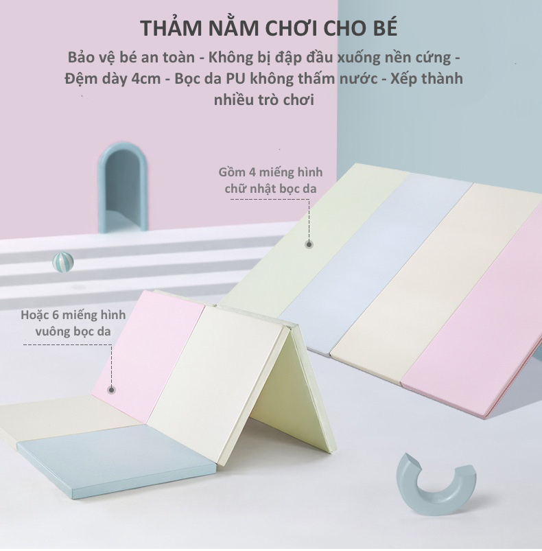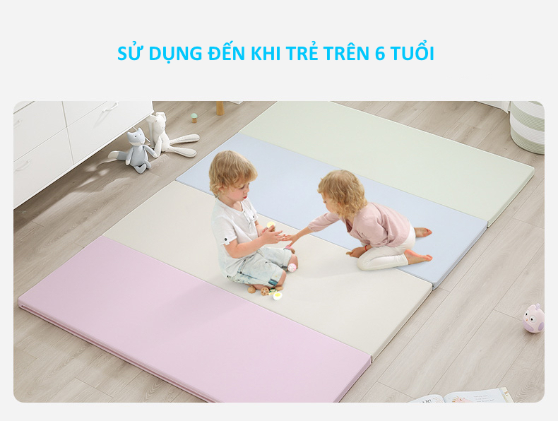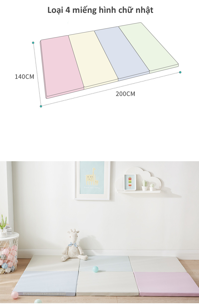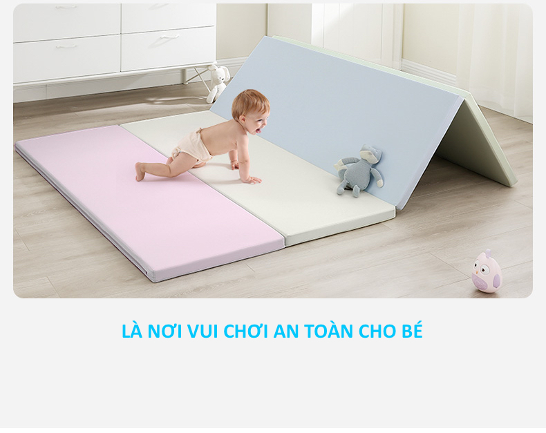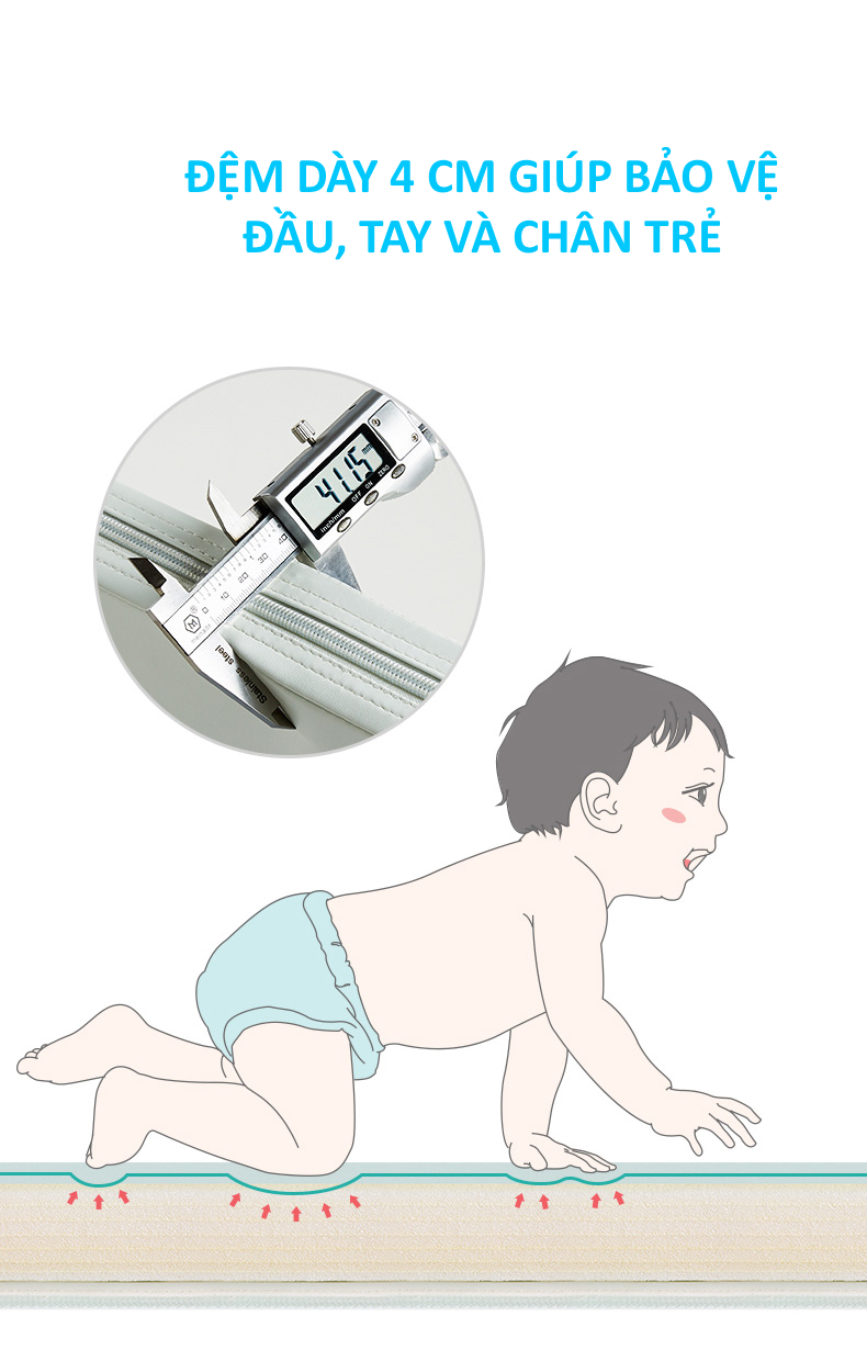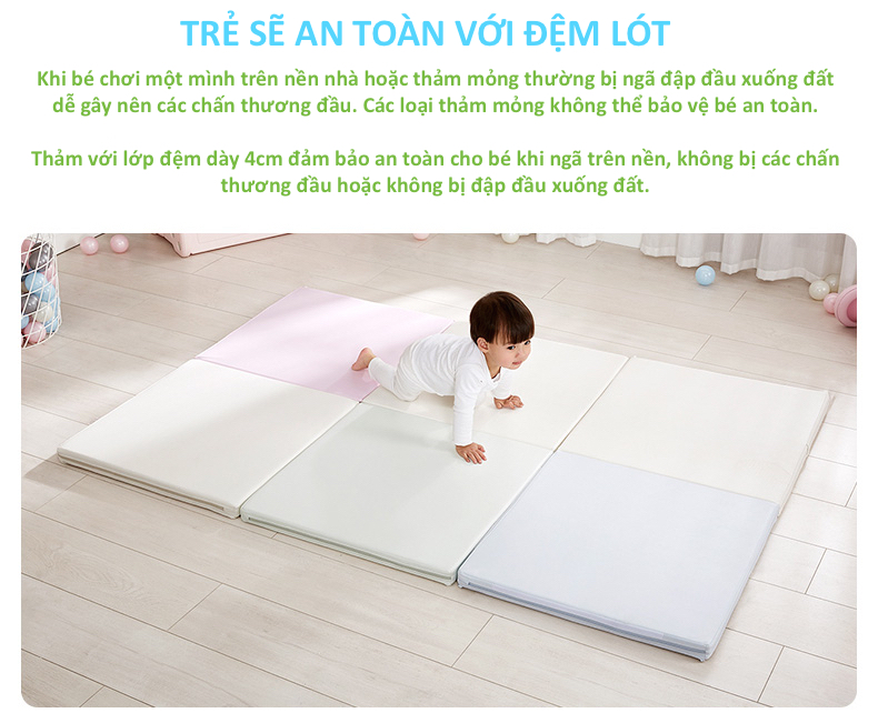 Thảm với lớp đệm dày 4cm đảm bảo an toàn cho bé khi ngã trên nền, không bị các chấn thương đầu hoặc không bị đập đầu xuống đất.