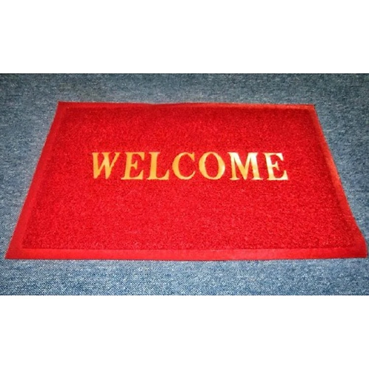 Mẫu thảm chùi chân welcome với chất liệu là nhựa cao su thiên nhiên có khả năng chống nước và chịu nhiệt. Do đó thường được dùng để ngoài trời hay trước cửa ra vào các nhà máy hay công ty.