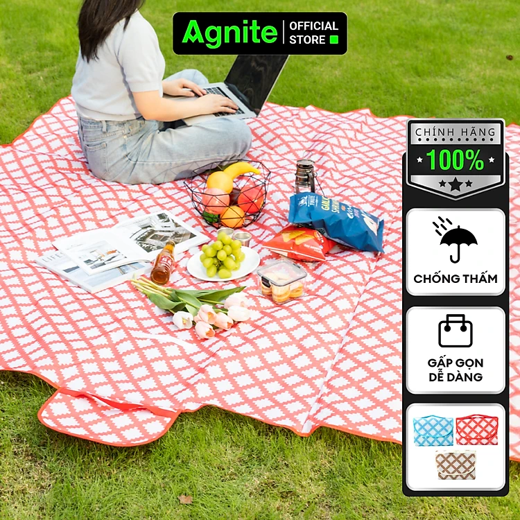 Thảm picnic, thảm dã ngoại chính hãng Agnite, thảm decor chống nước, nhiều màu đa kích thước dễ dàng gấp gọn như 1c túi