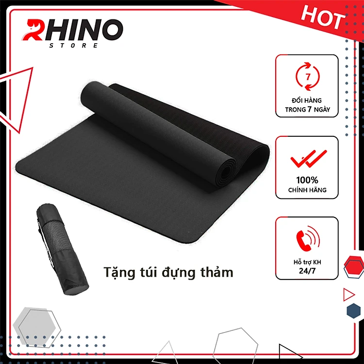 Thảm tập yoga 2 lớp 6mm tặng kèm túi Rhino M901 cao su non TPE siêu bám, chống trượt, tập gym, thể dục tại nhà - Hàng chính hãng