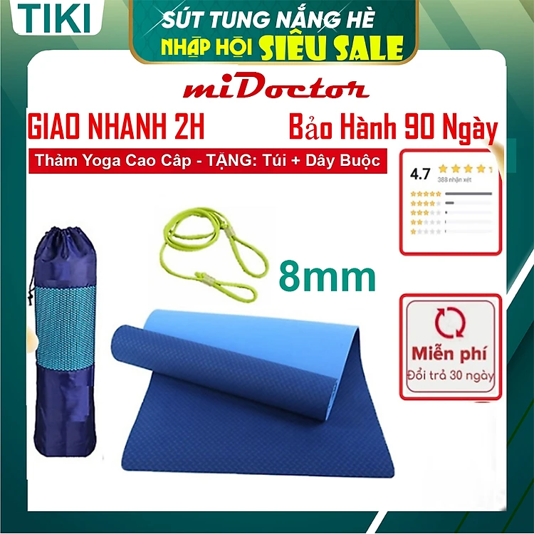 Thảm Tập YoGa Dày 8mm miDoctor CHỌN MÀU + Bao Thảm Tập Yoga + Dây Thảm Tập Yoga (Túi, Dây Giao Màu Ngẫu Nhiên)