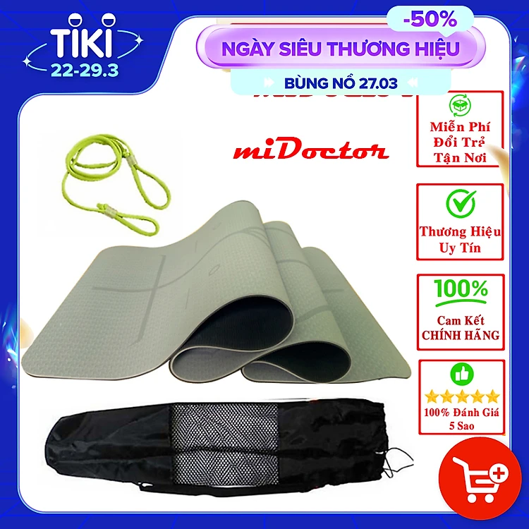 Thảm Tập Yoga Định Tuyến TPE 2 Lớp – Chọn Màu – Chọn Độ Dày + Bao Thảm Tập Yoga + Dây Buộc Thảm Tập Yoga Chính Hãng miDoctor
