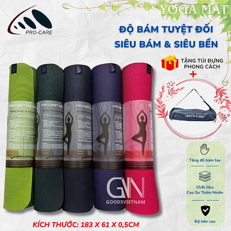 Thảm Tập Yoga Cao Su Thiên Nhiên PRO-CARE Siêu Bám & Siêu Bền - Hàng Chính Hãng Tặng Kèm Túi Đựng