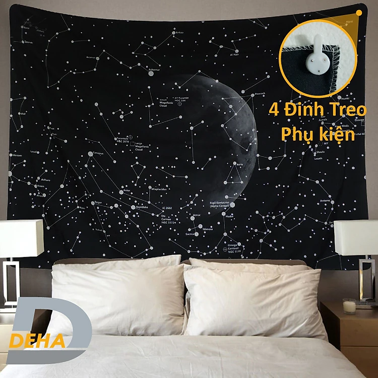 Thảm trang trí tranh vải treo tường họa tiết dải ngân hà bầu trời sao decor phòng nhà cửa, dán tường, cạnh giường