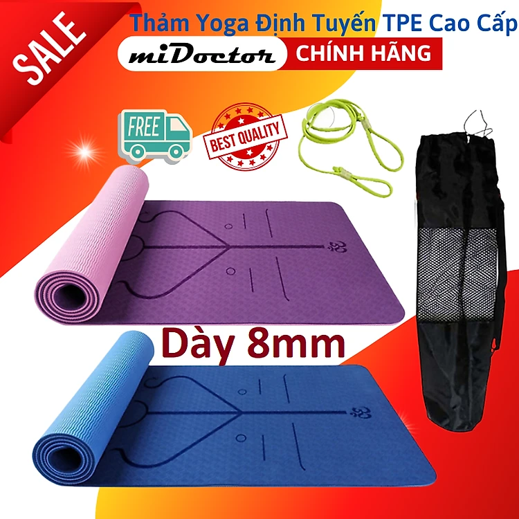 Thảm Tập Yoga Định Tuyến 2 Lớp miDoctor + Bao Đựng Thảm Tập Yoga Định Tuyến + Dây Buộc Thảm Tập Yoga (màu ngẫu nhiên)