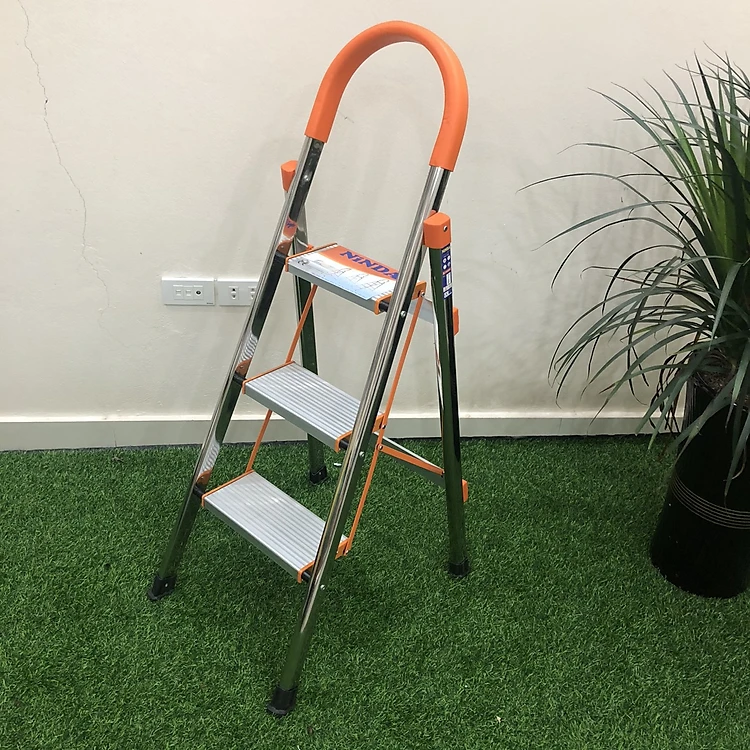 Thang ghế inox Ninda gia đình - Chính hãng, 3 bậc, inox không gỉ, chân cao su chống trượt, bậc cao nhất sử dụng 75cm