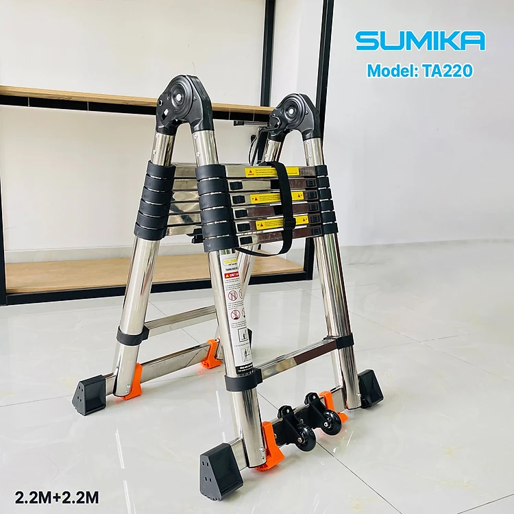 Thang Inox rút đôi SUMIKA TA220 - rút chữ A cao 2.2m, rút chữ I cao 4.4m, tải trọng 300kg