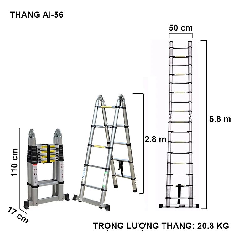 Thang nhôm rút chữ A, Hàng chính hãng NIKITA - An toàn, tiện dụng, đa năng
