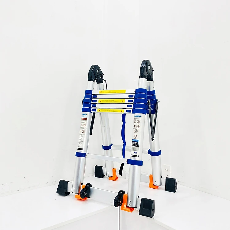 Thang Nhôm Rút Chữ A JUMBO A190B - Đai xanh, chữ A cao 1.9m, chữ I cao 3.8m, tải trọng 300kg