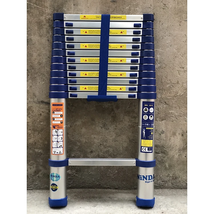 Thang nhôm rút đơn NiNDA NK-32 cao 3m2 màu xanh
