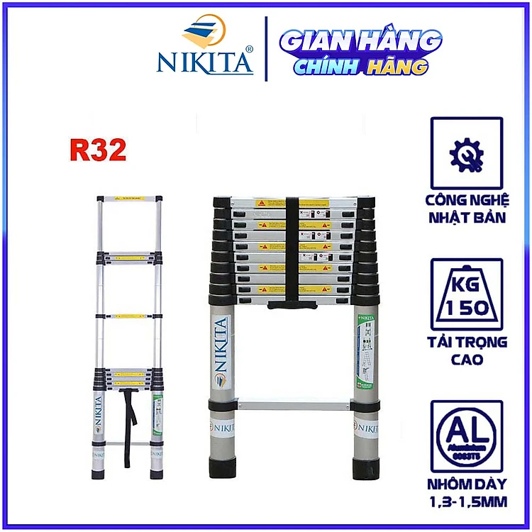 Thang nhôm rút gọn, an toàn, tiện dụng, đa năng - Nhôm 6063 không rỉ - Chính hãng NIKITA