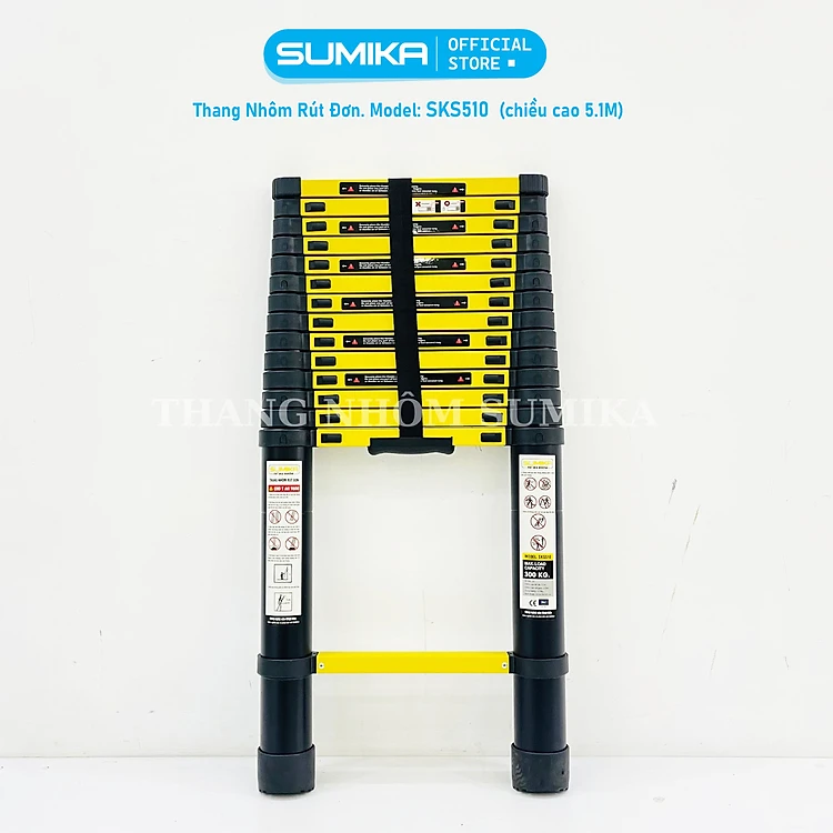 Thang nhôm rút gọn Sumika SKS510 - Chiều cao tối đa 5.1m, sơn tĩnh điện, chống trầy xước