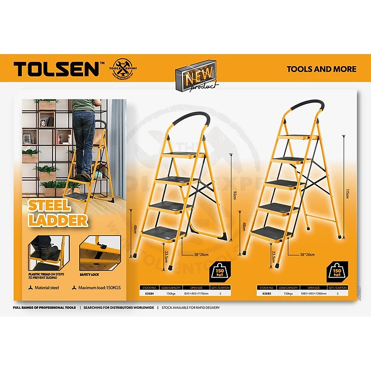 THANG THÉP 4 TẦN , 5 TẦN 150KG, TOLSEN 62684, 62685 - HÀNG CHÍNH HÃNG