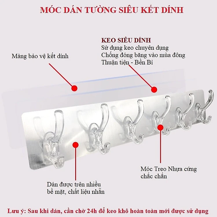 Thanh 6 Móc Treo Đồ Dán Tường Siêu Dính Chịu Lực Trong Suốt - Hàng Chất Lượng