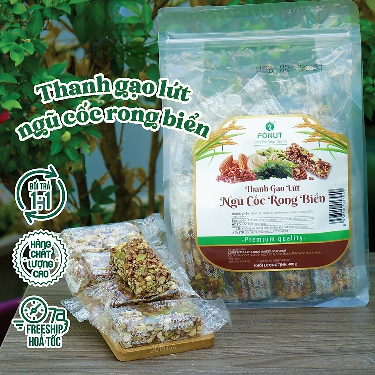Thanh bánh gạo lứt chà bông, rong biển Fonut ( Gói 400g) - thanh bánh gạo lứt ăn kiêng, healthy
