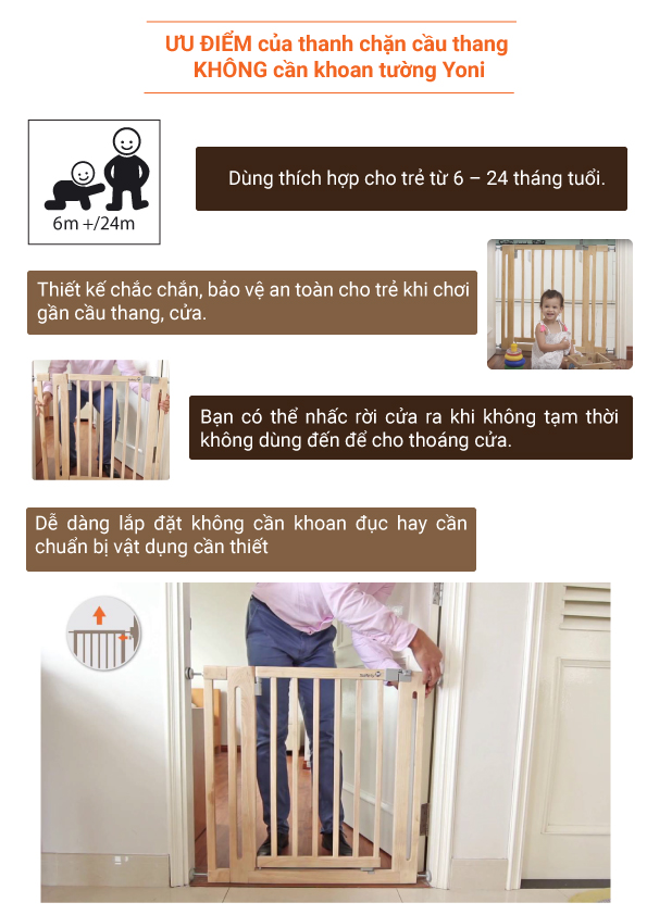 • Thanh Chặn Cầu Thang Không Cần Khoan Tường Yoni - Xuất khẩu Châu Âu có tác dụng chặn cầu thang, chặn cửa mà không cần khoan, là một sản phẩm rất hữu ích, đặc biệt dùng cho trẻ em được an toàn ngay trong chính ngôi nhà của gia đình bạn.