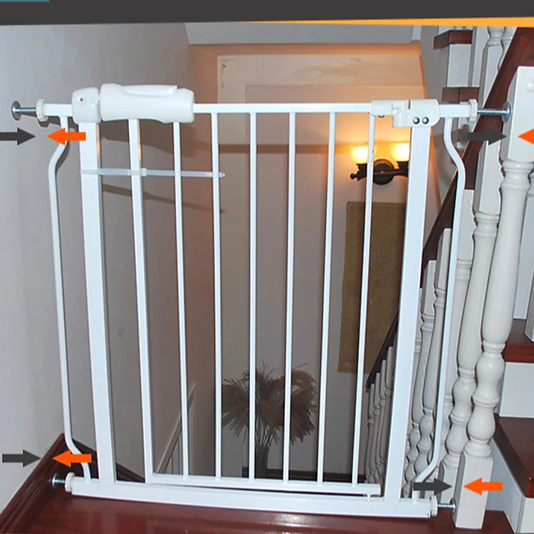 Thanh chặn, chắn cửa, cầu thang, bằng thép sơn tĩnh điện, không cần khoan đục, có chốt khóa đảm bảo an toàn cho bé