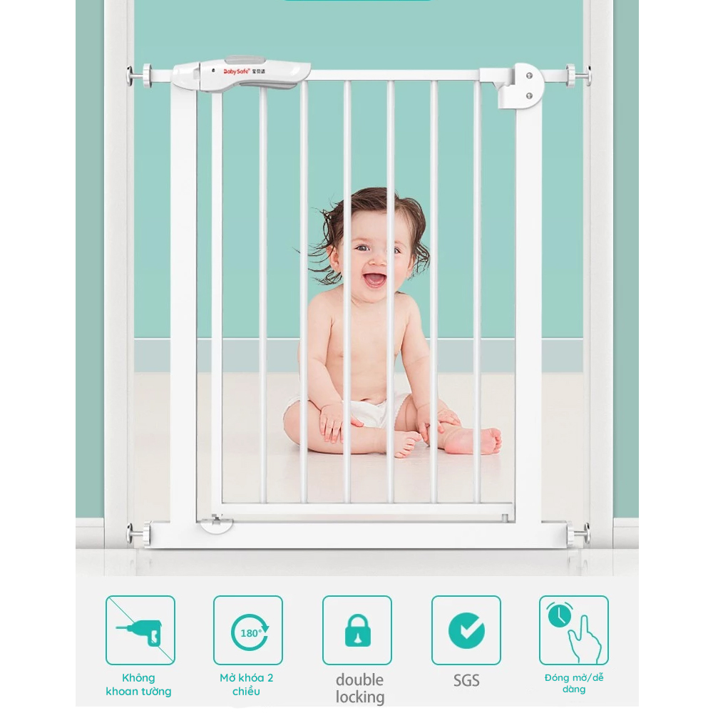 • Có thể sử dụng để chắn cầu thang, chắn phòng bếp bảo vệ bé yêu hoặc dùng cho thú cưng