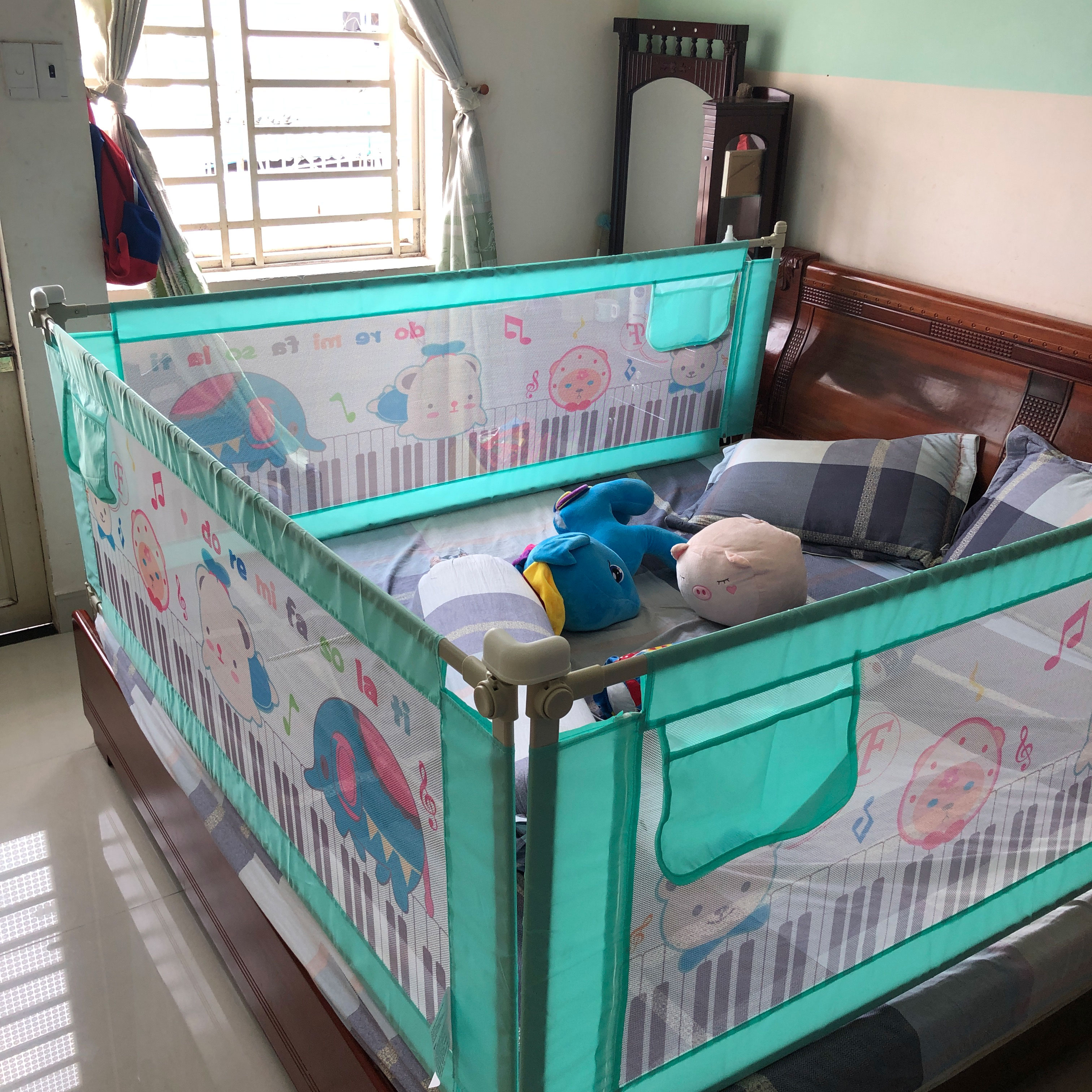 - Lắp vừa với hầu hết mọi kích thước giường ngủ cho bé, đạt tiêu chuẩn về độ an toàn của Mỹ.